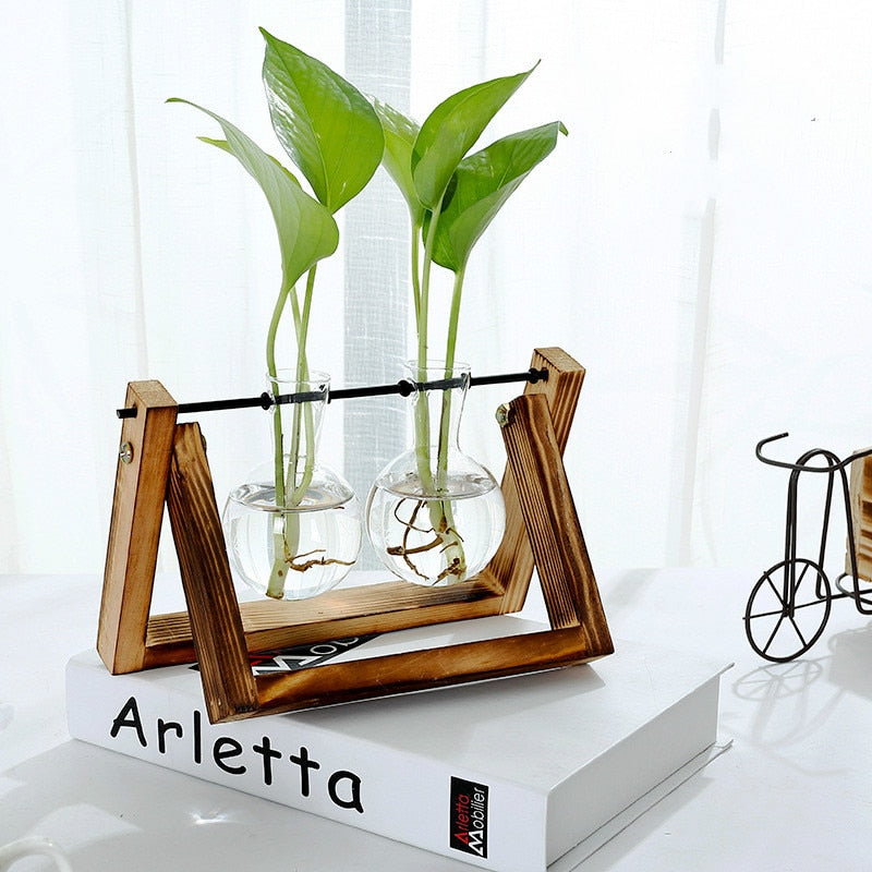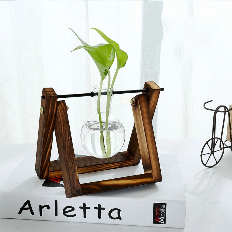 Terrarium Creative Hydroponic Plant Transparent Vase Wooden Frame vase decoratio Glass Tabletop Plant Bonsai Decor flower vase